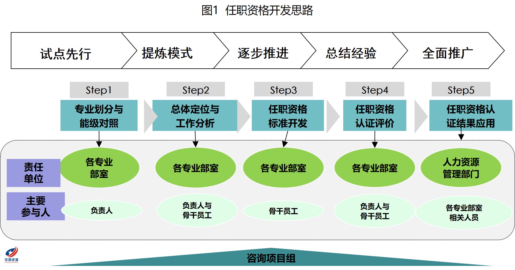 组建任职资格开发小组,分批开发专业任职资格标准。以企业发展战略要求和政策导向为指引,基于岗位责任和要求,对承担该岗位的长期综合绩效优秀的员工的成功行为和能力要素进行归纳和总结,开发任职资格标准,从而形成评价指南,牵引员工持续改进任职能力。